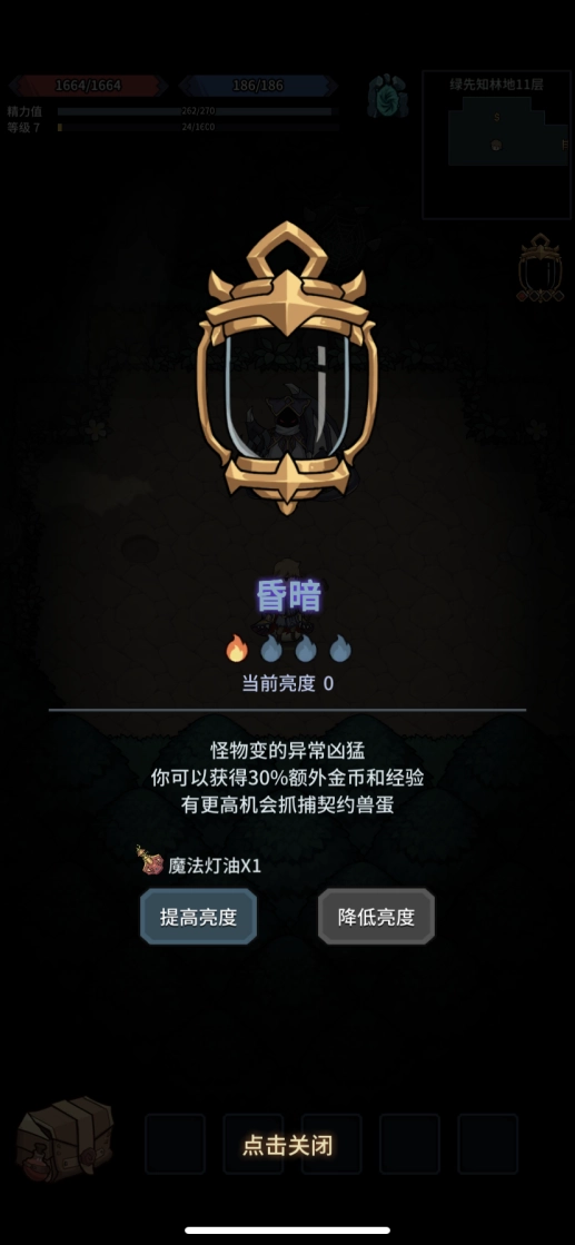 低亮度模式:适合战力远超对手时开启,能提高掉落物品的品质,不过相对的怪物难度也会增加。