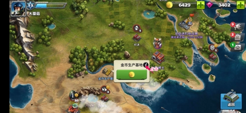 进入游戏主界面后,按照图示点击地图,即可进入大地图界面,具体可参考图示(此处以金币基地为例)。
