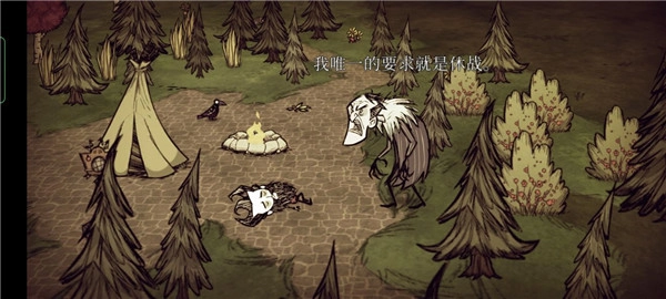 冬季时直接烧树,能让角色保持行动的时长是篝火的两倍。火女不仅可以直接生火,还能顺便恢复精神值,行动时间因此大幅增加。在冒险模式的“冬季之王”关卡里,其他角色往往会因为燃料和燧石耗尽而冻死,火女却恰恰相反——她的精神值很难降低,以至于无法通过方尖碑,最终被饿死(所以火女需要靠吃生肉来压低精神值)。
