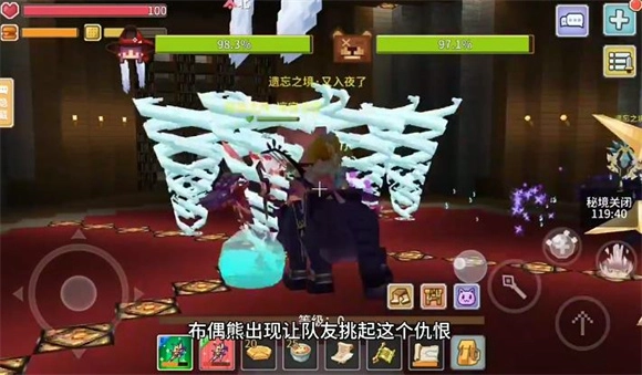 布偶熊在第一阶段没有范围伤害,骑士得用带挑衅效果的剑攻击它来建立仇恨。进入第二阶段后,布偶熊会释放物理范围伤害,此时治疗要密切留意血条——由于治疗缺乏物理防御,得及时用“炸奶”技能恢复自身生命值。到了第三阶段,布偶熊的技能强度达到顶峰:输出需要第一时间发现队友脚下出现的荆棘,同时要时刻关注治疗的状态以避免团灭;此外,输出还要主动攻击队友脚下的荆棘,协助解除威胁。