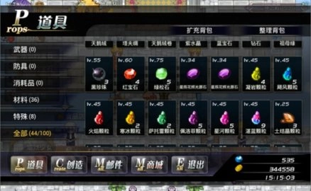 这个界面是你的物品界面,你获得的所有物品都在这里。在这个道具界面中可以进行各种操作,比如使用、装备、丢弃以及镶嵌宝石等。
