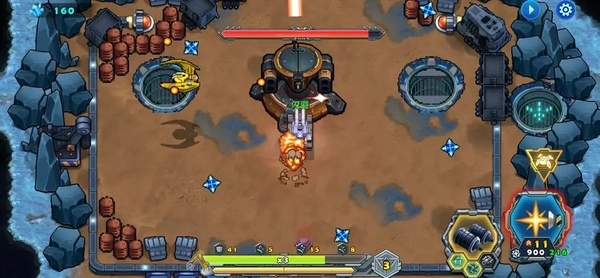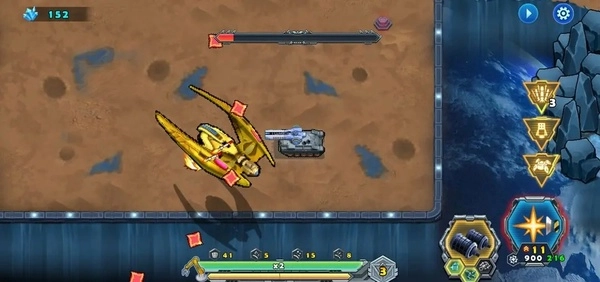 需要留意的是,打出来的资源先别用,等最后遇到BOSS时再释放。由于BOSS会发射跟踪导弹,所以我们得利用激光枪射程远的优势,和BOSS周旋。这时候要把控好摇杆操作的节奏,只要节奏控制得当,压力就不会太大,顺利过关不成问题。