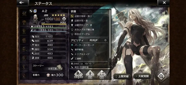 和塞拉斯类似,A2凭借一人分饰三角的特性,前期是相当值得投入使用的角色。用上她之后游戏体验会明显提升,哪怕不开狂战士模式,输出能力也很可观。不过她有个小遗憾——尼尔联动活动已经结束,而且短期内没有复刻计划,所以现阶段没法获取这个角色,错过了就暂时没机会了。
