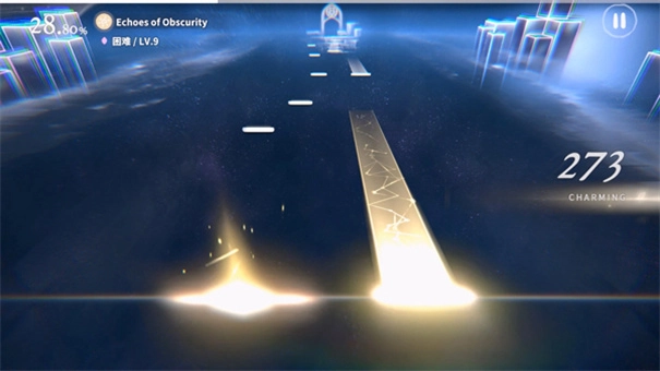 然后看准时机打击铺面上不断下落的音符。