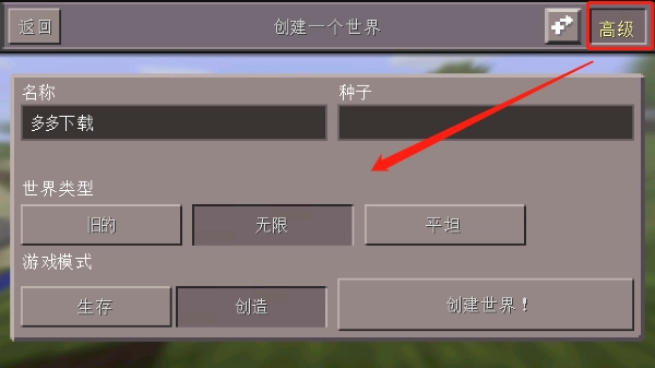 点击“高级”选项,既可以添加mod文件,也能够对游戏模式进行切换。