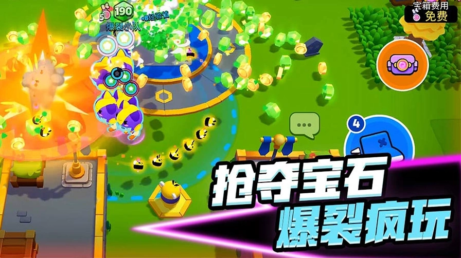 《爆裂小队》是Supercell最新推出的战术夺宝游戏。它开创了全球独一无二的随机“百变配队”玩法,在游戏里,10位玩家会展开一场史诗级的对战。玩家可以收集来自《部落冲突》《荒野乱斗》《皇室战争》等Supercell旗下游戏的角色,并让这些角色觉醒。通过合理搭配,打造出强大的小队,不断壮大小队实力,击败首领,还能和好友对战,目标是收集全场最多的宝石。游戏中有数十种不同的随机事件,角色阵容千变万化,地图也多种多样,玩法丰富,战况更是跌宕起伏,让每一场对战都充满全新的乐趣!