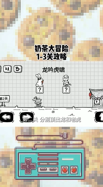 第二关名为龙吟虎啸,画面上方有兔子与蛇的形象,玩家需持续向上撞击、顶触,分别引出龙和老虎,获取钥匙后即可开门通关。