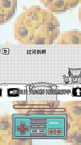第四关“过河拆桥”,需让奶茶主人公先过桥,接着连续点击“拆”字,之后直接用手打开门锁即可通关。
