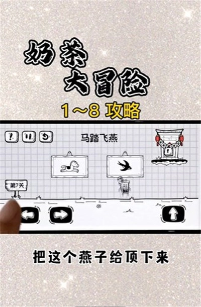 第7关“马踏飞燕”的玩法是:用奶茶杯去顶那只燕子,把它从原来的位置顶下来,接着将燕子推到马的肚子下方,这样就能看到马蹄踩在飞燕头顶的画面,完成这一步就顺利过关啦。