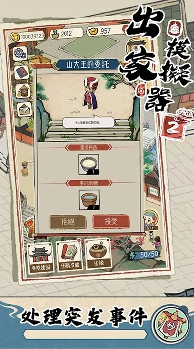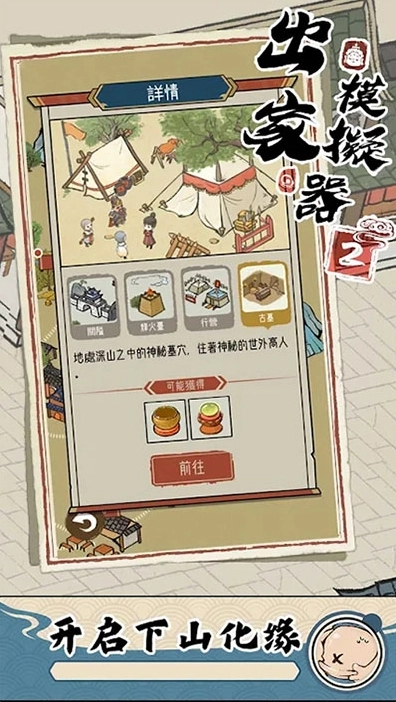 开启化缘活动——下山进行化缘,就能有机会获取多样的道具和相关事件,以此助力寺庙更完善地建设。