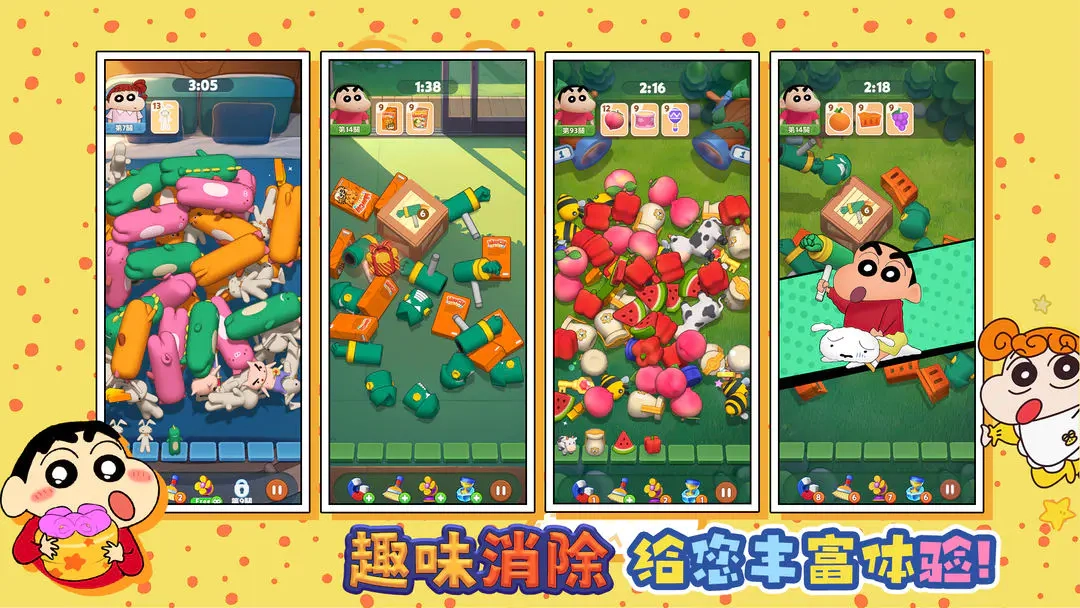 这款游戏凭借独特的蜡笔小新主题与精致的3D画面广受关注。它既保留了经典的三消核心玩法,又创新融入找茬元素,在提升游戏挑战性的同时增添了更多趣味。社交功能的加入,让玩家在沉浸游戏乐趣的同时,还能与好友展开互动。不仅如此,丰富多样的活动机制与完善的奖励系统,也有效激发了玩家的长期参与热情。