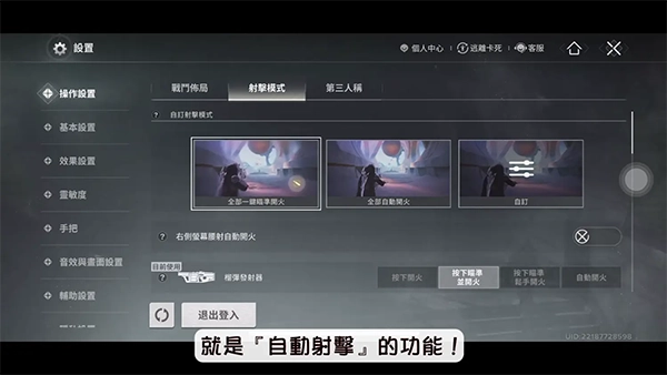 设定方式:设置-操作设置-射击模式-全部自动开火