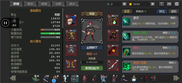 作为队伍的核心输出之一,该角色需要完成4次及以上的转生。技能方面,优先选择“敌人距离越近伤害越高”和“普攻时有30%概率发射3个攻击”这两个效果。装备搭配上,穿戴百发百中套装,项链与戒指的宝石以冷却属性为主;其暴击率可自行满足需求,对刺客的依赖程度较低。后续培养可侧重普攻、连击和冷却这几个方向。