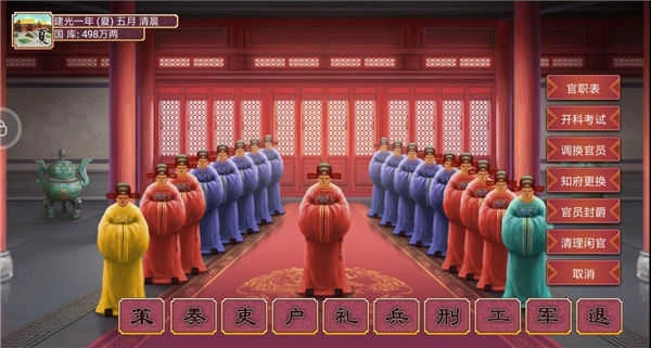 调换官员:调整当前朝廷官员的职位,选拔贤才任用能人,使您的部下能够充分发挥各自的长处。