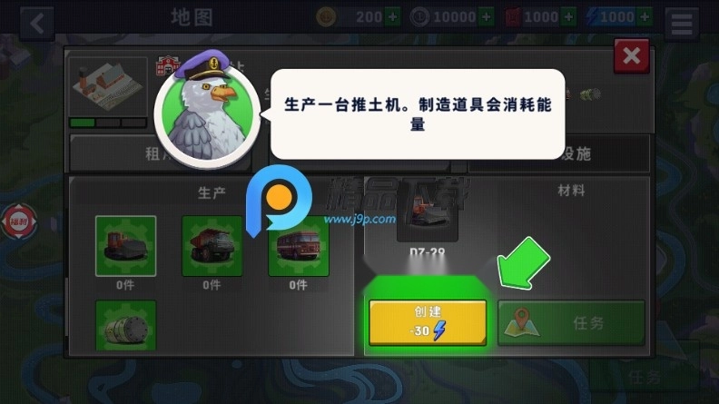 生产一台推土机。制造道具会消耗能量