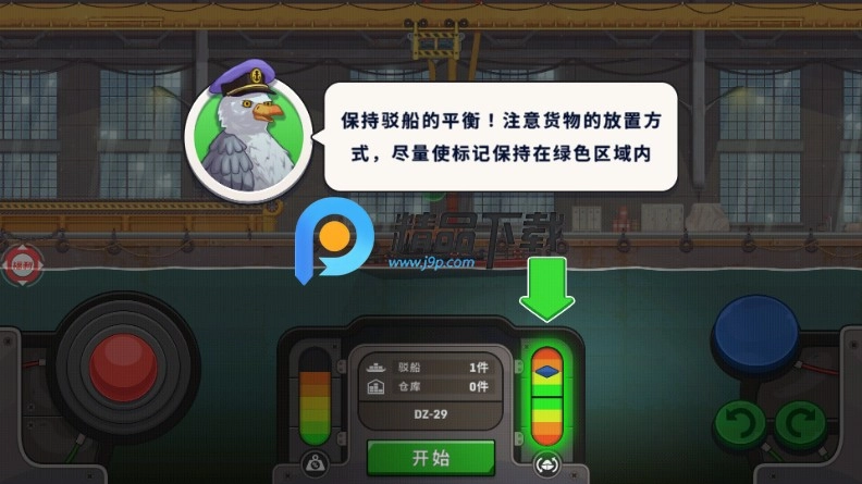 请保持驳船的平衡状态!在放置货物时要留意方式方法,尽可能让标记处于绿色区域之中。