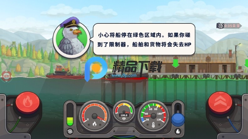 请小心把船停靠在绿色区域里。要是你触碰到了限制器,船和货物都会掉HP的。