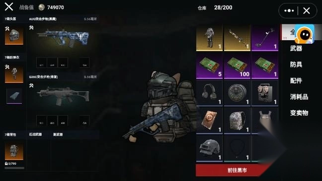 玩家既能用游戏初始发放的货币在黑市购置所需的武器与装备,也能借助背包里的道具和资源完成关卡通关。