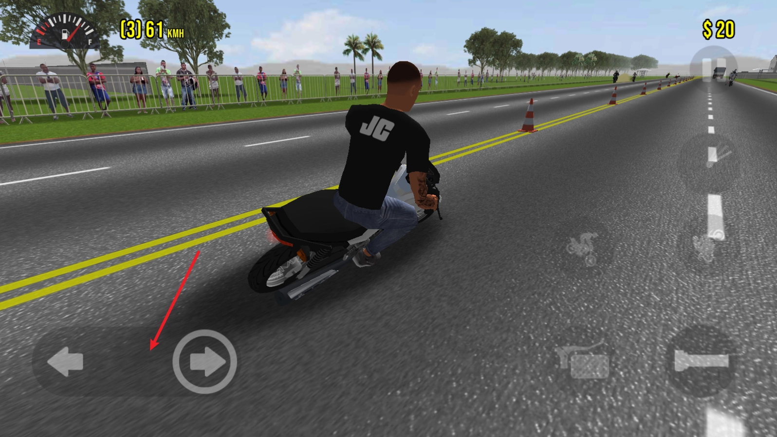 游戏里最右边的是油门把手,它旁边的那个是后退键,同时也能用来减速。