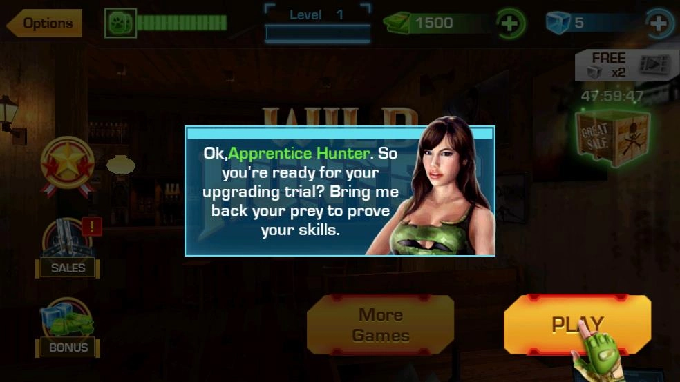 《荒野猎手》是一款射击动作游戏,了丰富多样的地形地图与生物资源。凭借高度仿真的画面效果,各类生物得以栩栩如生地展现在玩家眼前。玩家需依据不同关卡的具体要求,挑选合适的猎物展开捕猎行动,通过持续提升自身能力来完成关卡挑战,进而获取相应的游戏奖励。