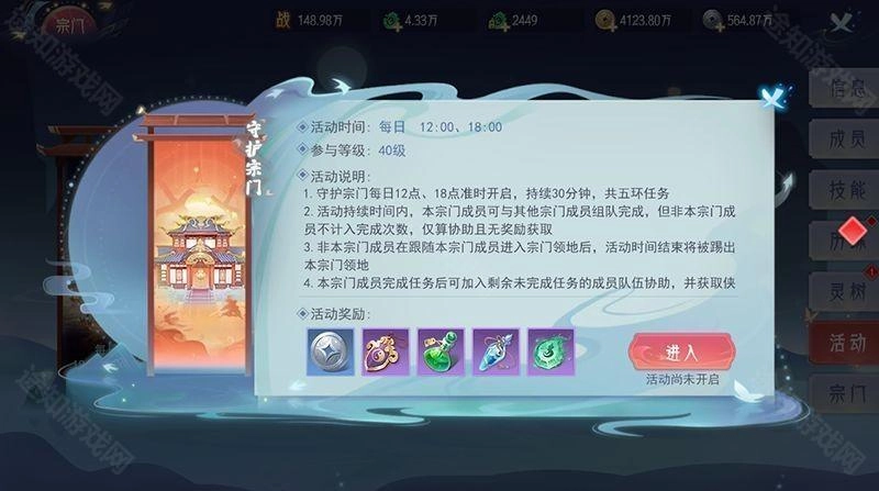 加入宗门,每日12:00、18:00开启