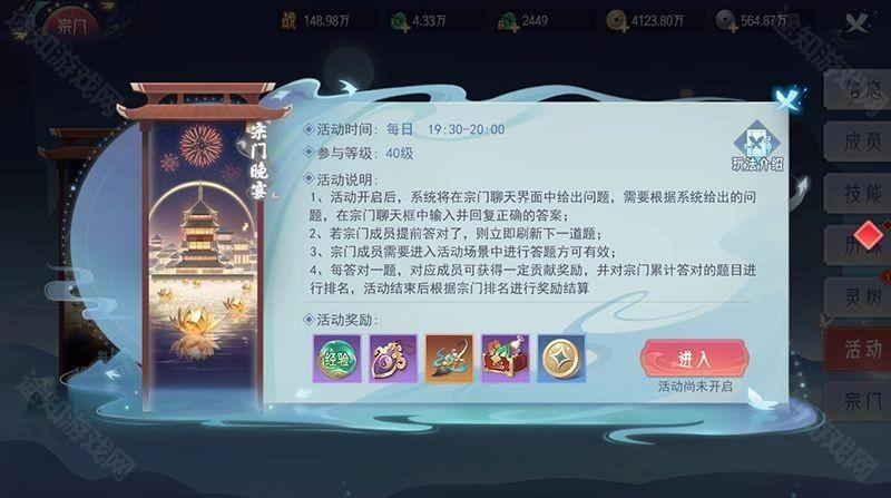 加入宗门,每日19:30开启
