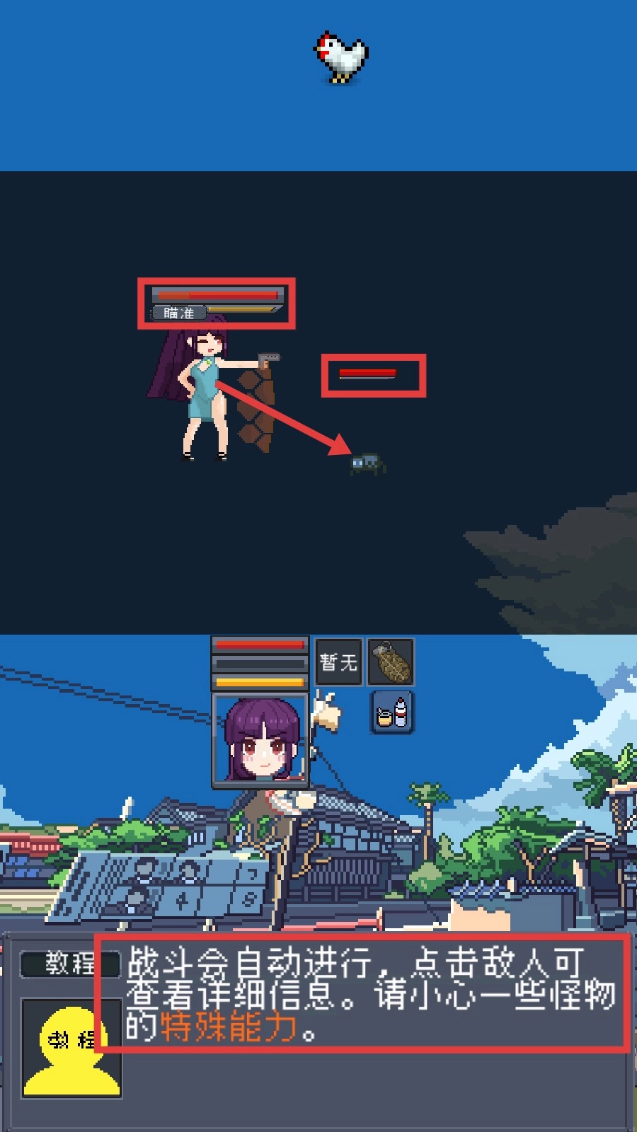 战斗会自动进行,点击敌人能查看【详细信息】,要留意怪物的【特殊能力】对局势的影响。