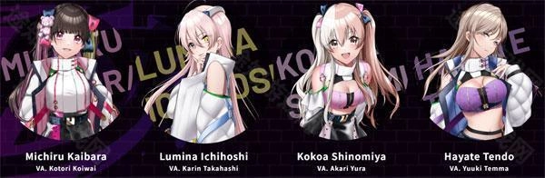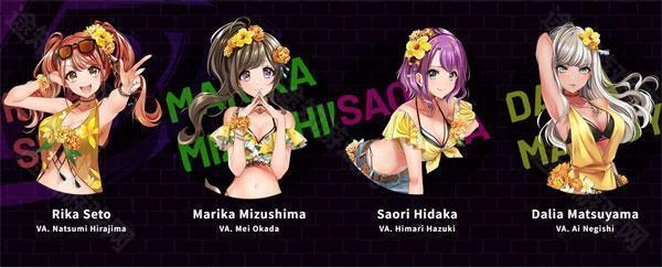 D4DJ是由24名女DJ组成的个性女DJ乐团,包括Hy Around!、Peaky P-key、Photon Maiden、Merm4id、RONDO和Lyrical Lily!每个团体都有独特且帅气的DJ音乐风格,DJ玩家们能通过知名声优的「全语音」演出以及Live2D生动的表演,与每位女DJ展开最真实的互动和连结。