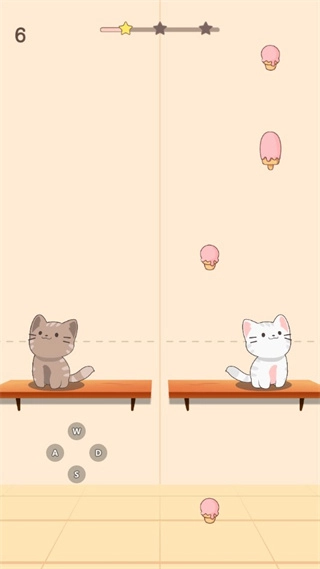 双手操控:玩家需要用两只手分别控制一只猫咪,通过左右移动的方式,让猫咪接住从空中落下的美食。