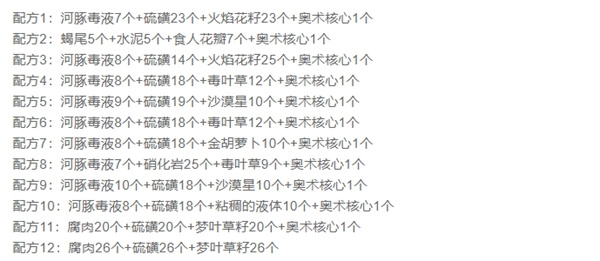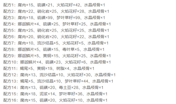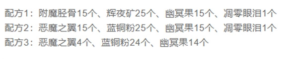 黑暗药水共有三个配方,所需材料收集起来十分容易。