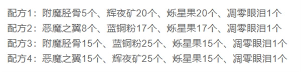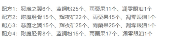 魂铸药水:拥有四个配方,记得多收集材料。