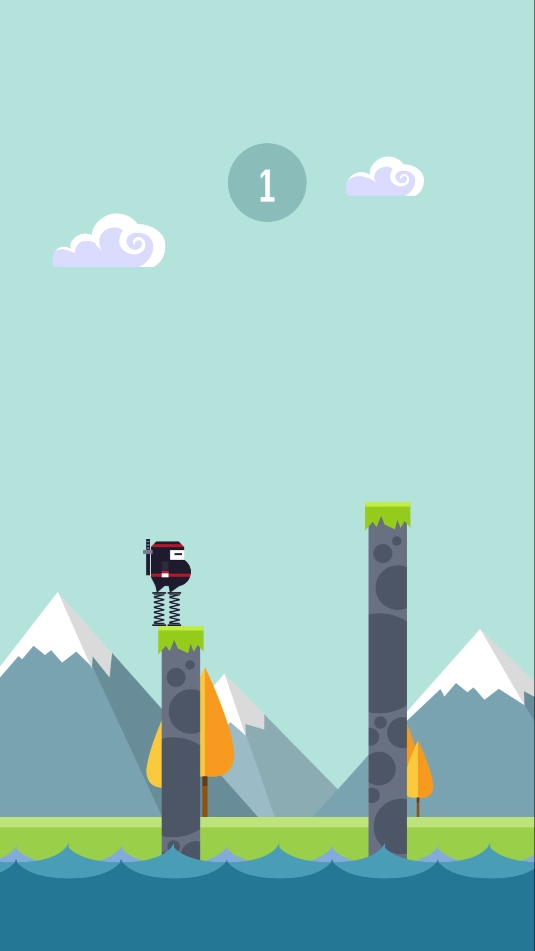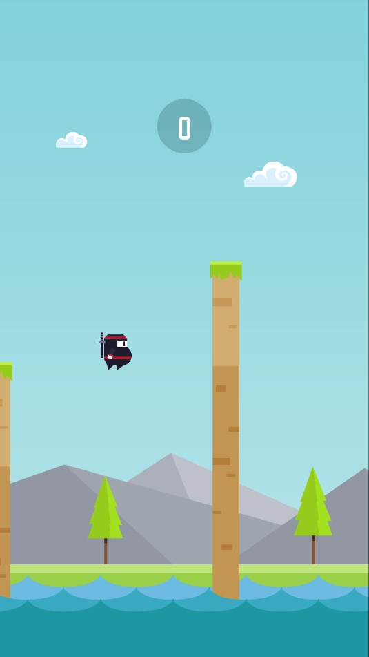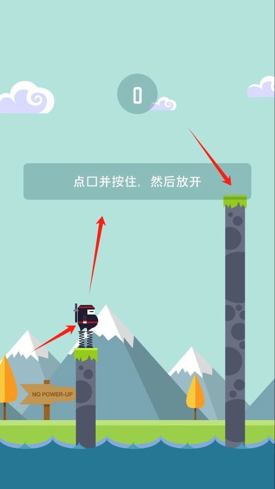 按住屏幕时,忍者会进入蓄力状态;松开手指后,忍者便会起跳,你需要操控他精准跳到另一根柱子上。