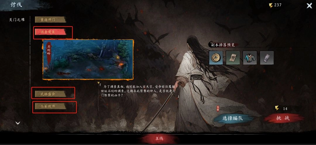 阵营材料(正、邪、散、奇):不同章节的BOSS会掉落不同的阵营材料,具体掉落情况可在关卡奖励预览界面查看。