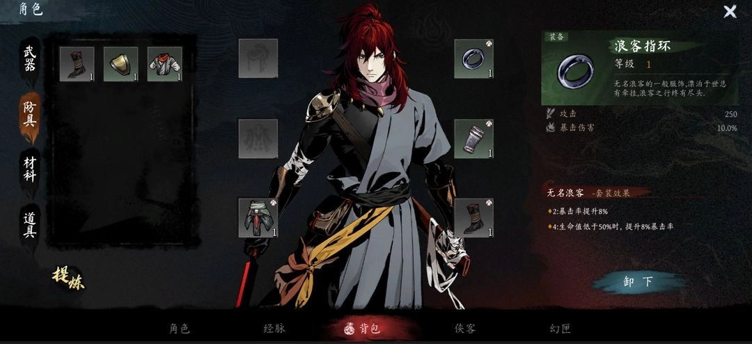 侠客升级后,攻击、生命、防御这三项属性都能得到提升。所需的升级材料,既可以通过挑战关卡获取掉落,也能在“寻访”玩法的每次抽卡操作中获得。