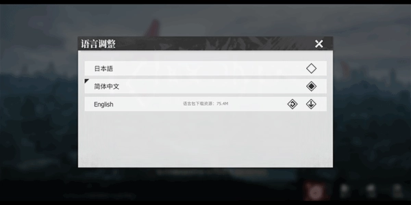 等资源解压完成后,游戏会自动检测当前系统语言,接着弹出提示让我们选择简体中文或日语,直接选简体中文就可以了。