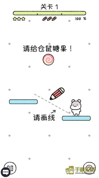 通过划线使掉落的糖果能够直接落入小仓鼠