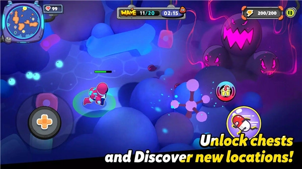 通过摇杆控制纳米战士移动,瞄准病灶区域的细菌。