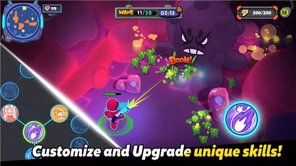 玩家通过清除舞台上的敌人,提升英雄的等级与实力,开启新的挑战关卡。