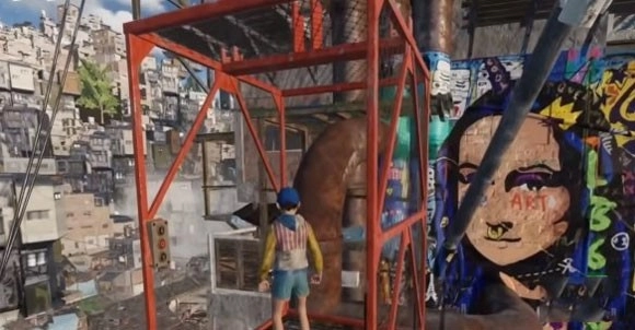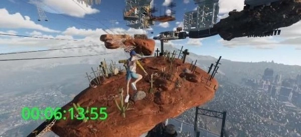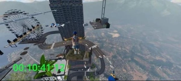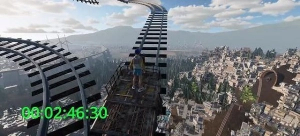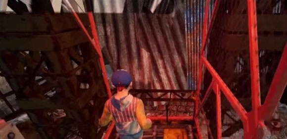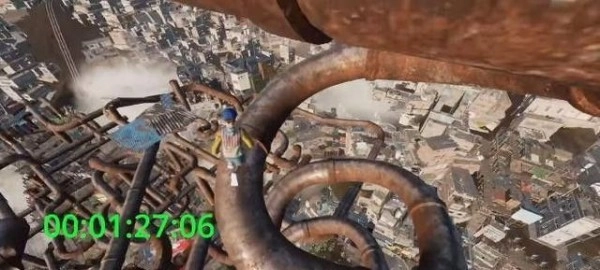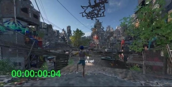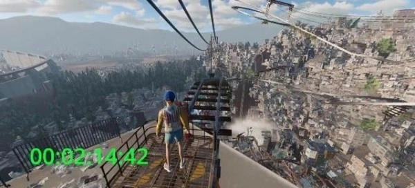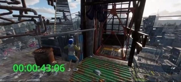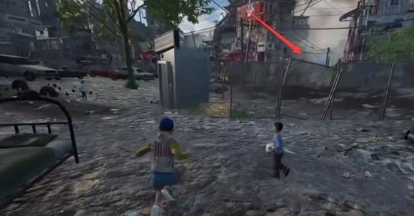 随后跳上平台,接着往左边走,就能找到一片街道,等看到那个广告牌时跳上去就行。