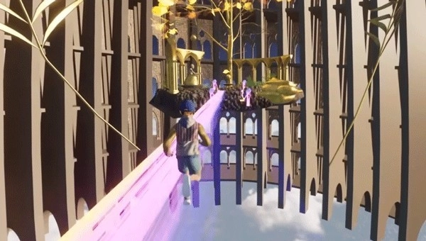 过了那个虚假的平台之后,前面的彩虹桥只要一直往前跑就能顺利通过,过程十分简单。