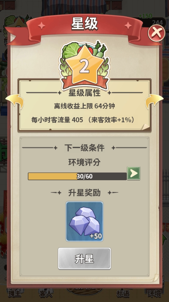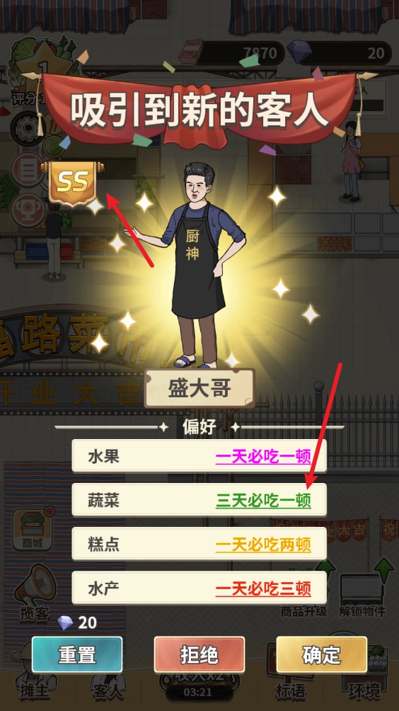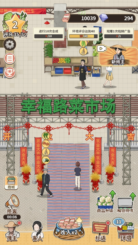 当环境评分逐步提高时,你就能吸引到更多具备较强消费能力的顾客,从而使你的菜市场获得更可观的经营收益!
