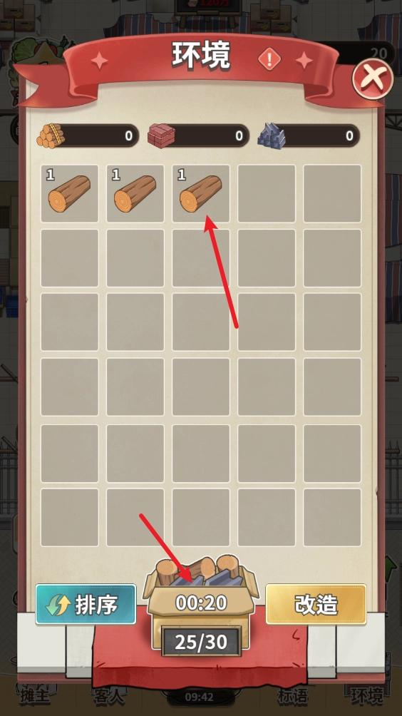 首先我们点击右下角的“环境”选项,进入对应的界面后,通过消耗体力就能获取木材之类的材料。