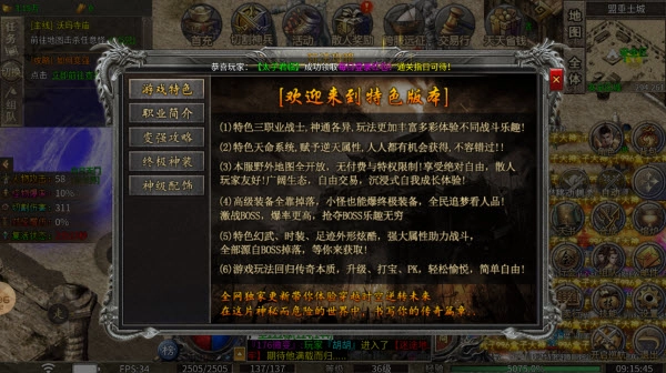 香江攻速179,这是一款全新打造的1.76神器特色版本传奇游戏。它采用经典的单职业设定,在此基础上,以单职业战士为核心衍生出三大职业流派。每个流派都有其独特之处,适配不同打法习惯的玩家——无论你偏爱输出爆发,还是倾向团战防御,都能在这里找到契合自己的选择。游戏玩法丰富多样,能让你体验到截然不同的战斗乐趣。
