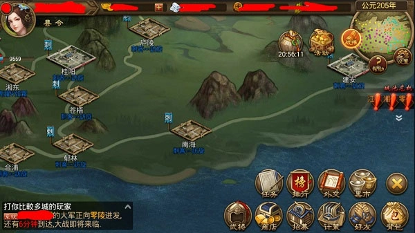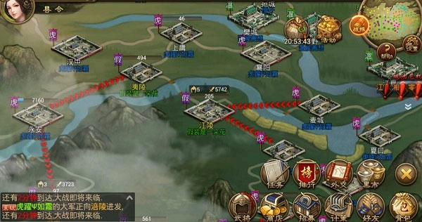 点击感叹号,就能快速定位到即将遭受攻击的城池,助您在最短时间内做出判断,为城池补充兵力、调遣将领进行守护。