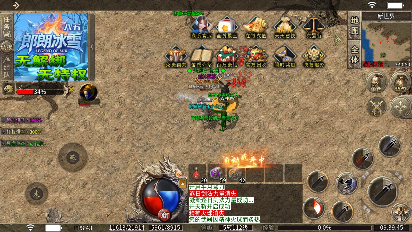 游戏一上线就送上古斗笠、上古盾牌,还直接给到5转,人物等级直送112级外加时装,到手就能下地图砍怪!