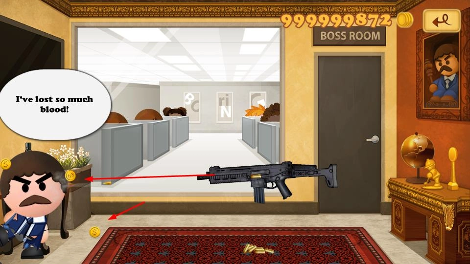 操控武器进行击打:挑选已定制或解锁的武器,借助点击、滑动等简易操作向老板发起击打,凭借物理学仿真所带来的真实反馈,体验击打过程中的畅快之感,再配上俏皮话来增加趣味性。