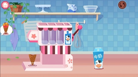 点击这个标志就能进入制作界面,接下来就可以着手为顾客制作美味的冰淇淋了,记得要加入牛奶哦。