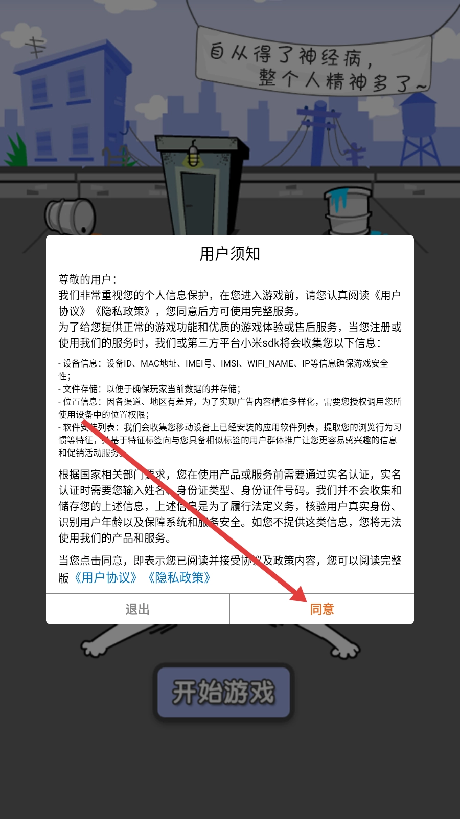 进入游戏,点击【同意】。