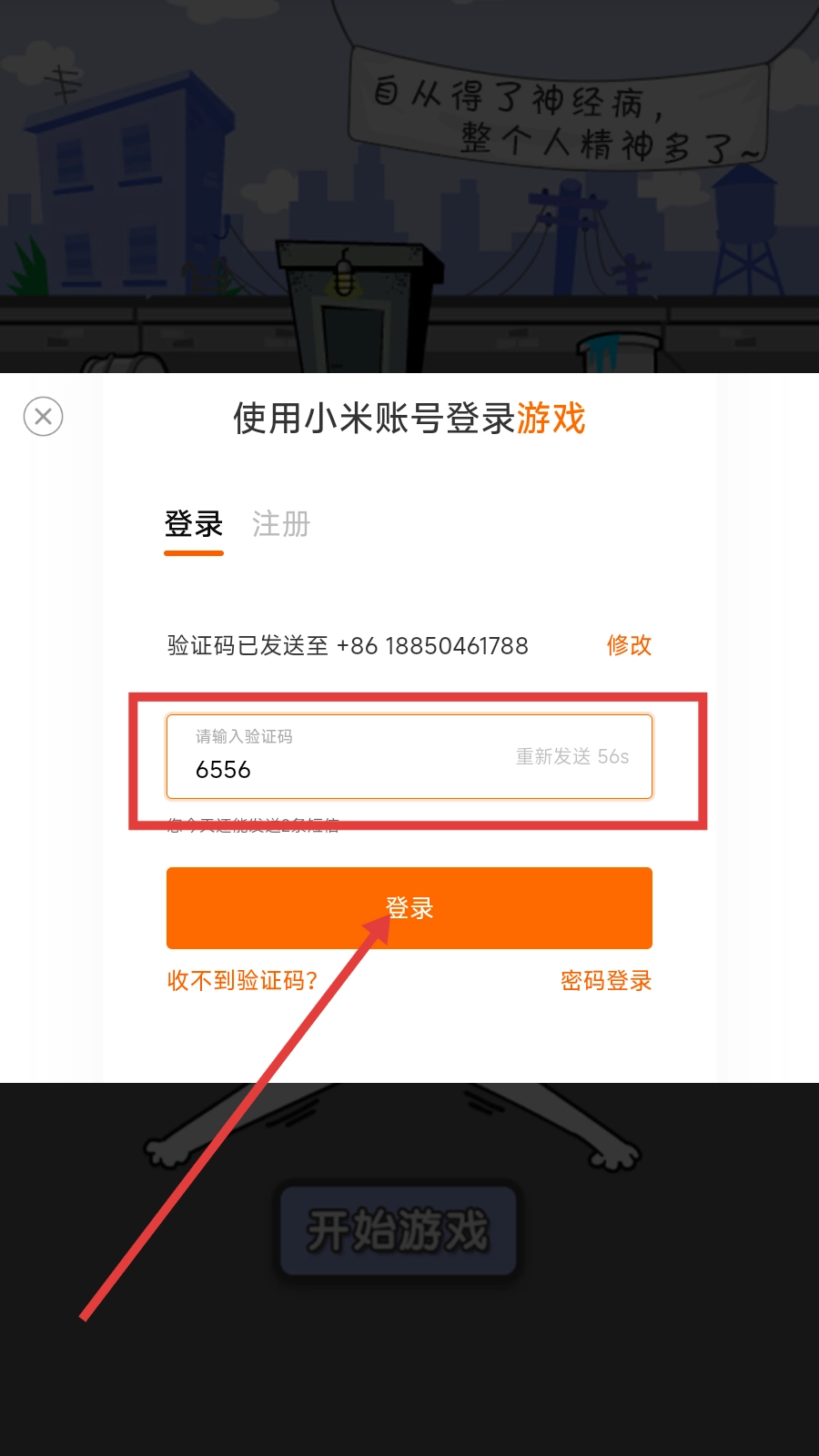 输入验证码,点击【登录】,即可开始游戏。