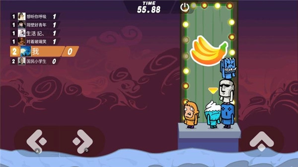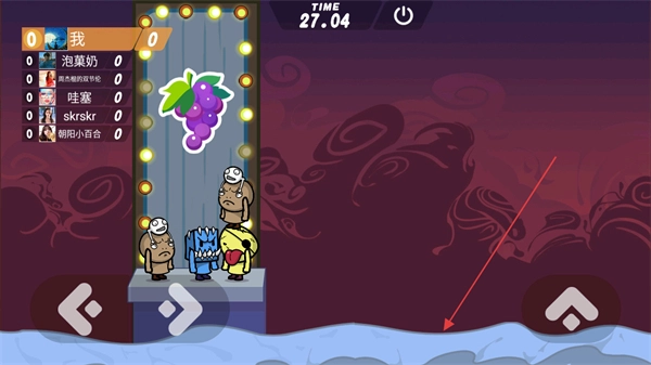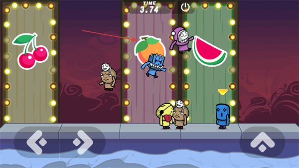 根据图片里的水果来挑选对应的地板,要是选不对就会掉进水里,这一轮就没有得分了。